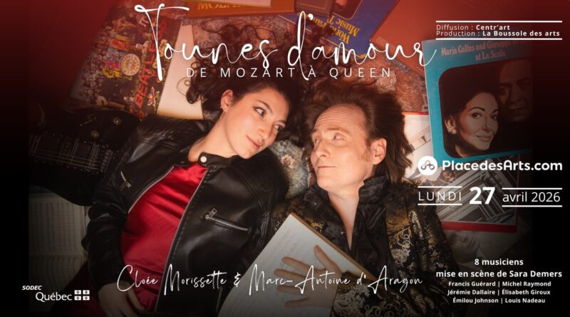 Le spectacle « Tounes d’amour de Mozart à Queen (Love n’Tune) » sera présenté le 27 avril à la Place des Arts, proposant un parcours musical éclectique mêlant classique, pop et comédie musicale.