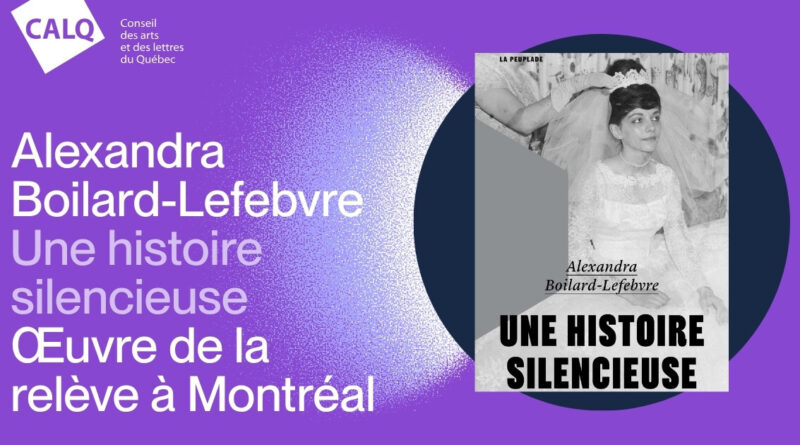 L’autrice Alexandra Boilard-Lefebvre a reçu le Prix du CALQ – Œuvre de la relève à Montréal pour son roman Une histoire silencieuse, a annoncé le Conseil des arts et des lettres du Québec.
